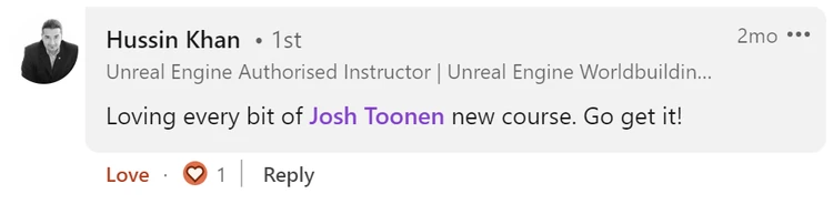 “I’m just halfway through the course and it's a huge difference. Very good intro to Unreal Engine for film!”
